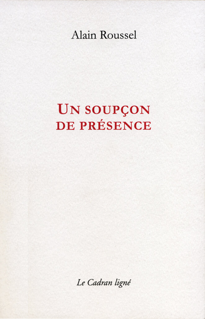 Dans ce soupçon de présence, édité par Laurent Albarracin au Cadran Ligné, il interroge la place de sa présence au monde à partir de ses cinq sens. "J'existe. J'ai conscience que j'existe. A part cela, l'énigme est totale. Je ne suis au monde que par mes sens." A partir de l'observation d'un arbre et d'un oiseau par la fenêtre, il verse, par la pensée, sur cette scène un soupçon (une pincée) de présence et de relation intimement liée